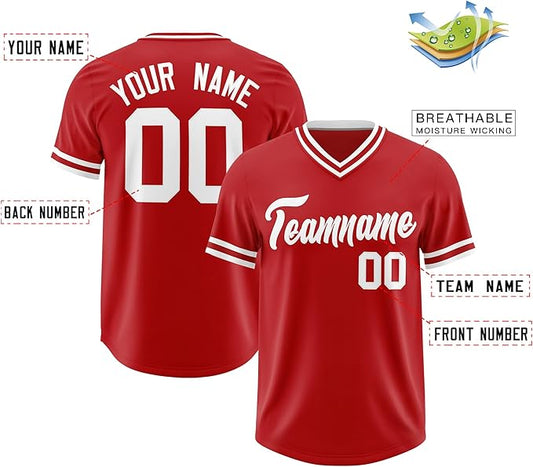 Regular price From $17.00 USDRegular priceUnit price / per$40.00 USDSale price From $17.00 USDCustom Baseball V-Neck Top Jersey Red/White