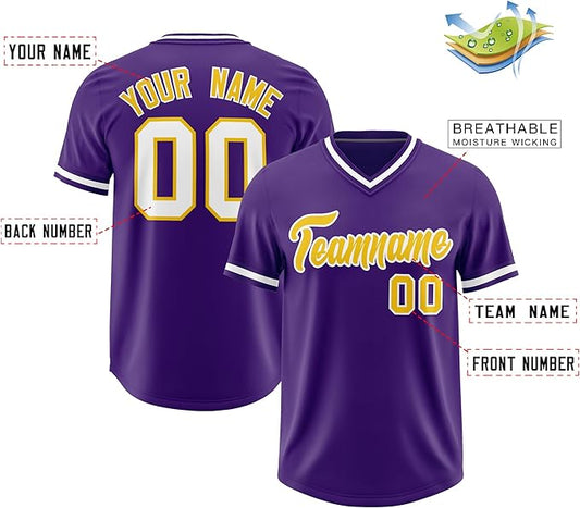 Custom Baseball V-Neck Top Jersey Purple/Yellow-white