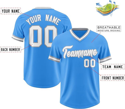 Custom Baseball V-Neck Top Jersey Powder Blue/White