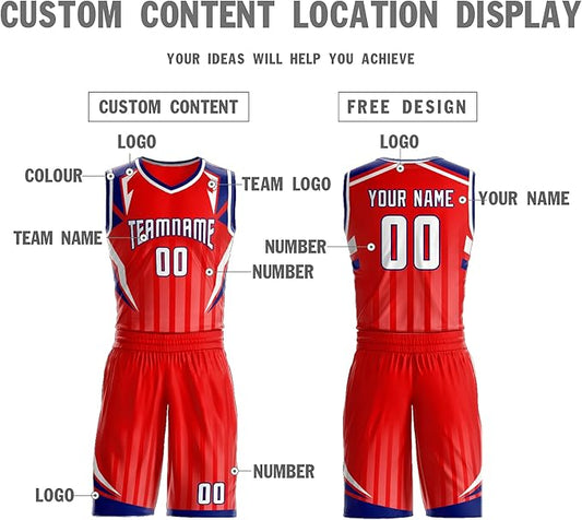 Custom Red Navy And White Basketball Uniform - Personalized Team Gear