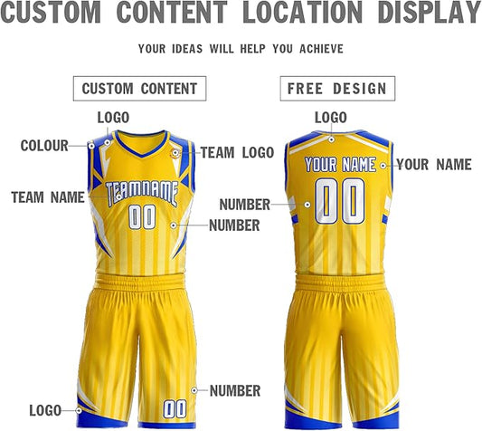 Custom Yelow Royal Blue and White Basketball Uniform - Personalized Team Gear