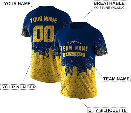 Vendor:EHSAN BASHIR INDUSTRYRegular price From $15.00 USDRegular priceUnit price / per$40.00 USDSale price From $15.00 USDCustom Basketball Yellow and Navy Blue Performance T-Shirt